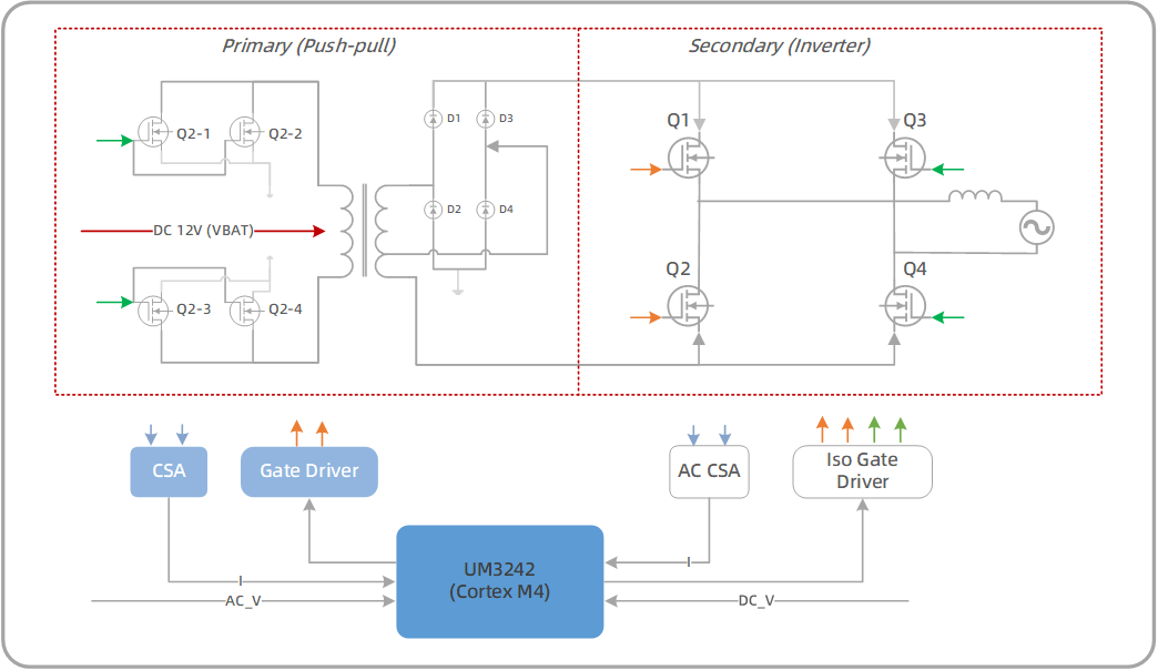 單向逆變,前級采用推挽架構,后級采用全橋逆變