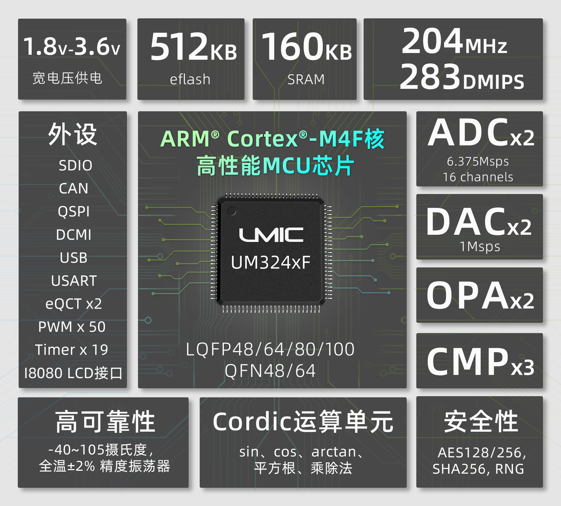 · UM324xF系列內置高性能模擬資源和豐富數字接口