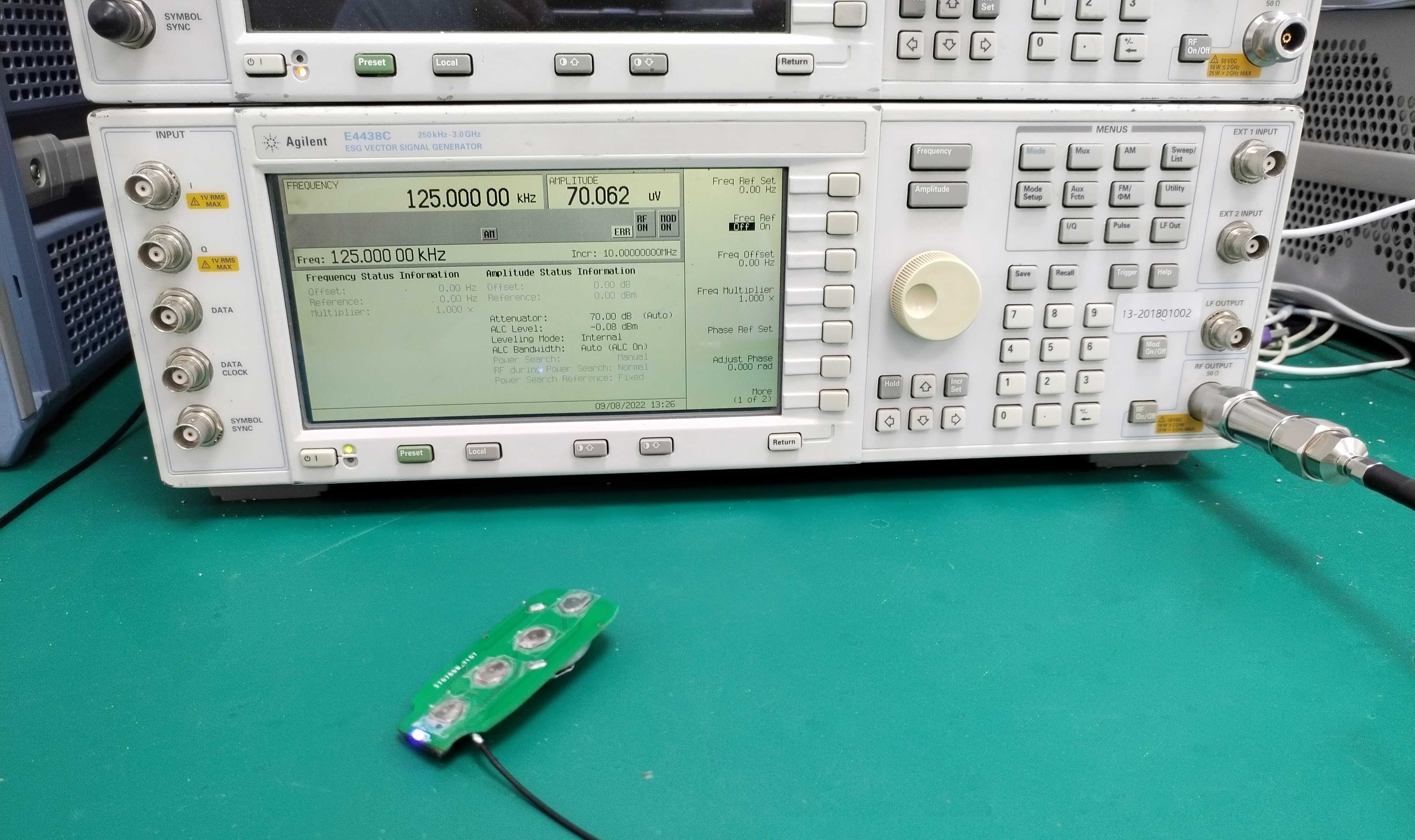 125KHz接收芯片接收靈敏度達到了70uVRMS:
